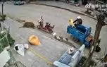 ببینید؛ سقوط پیاپی یک کودک از پشت موتور سه چرخ